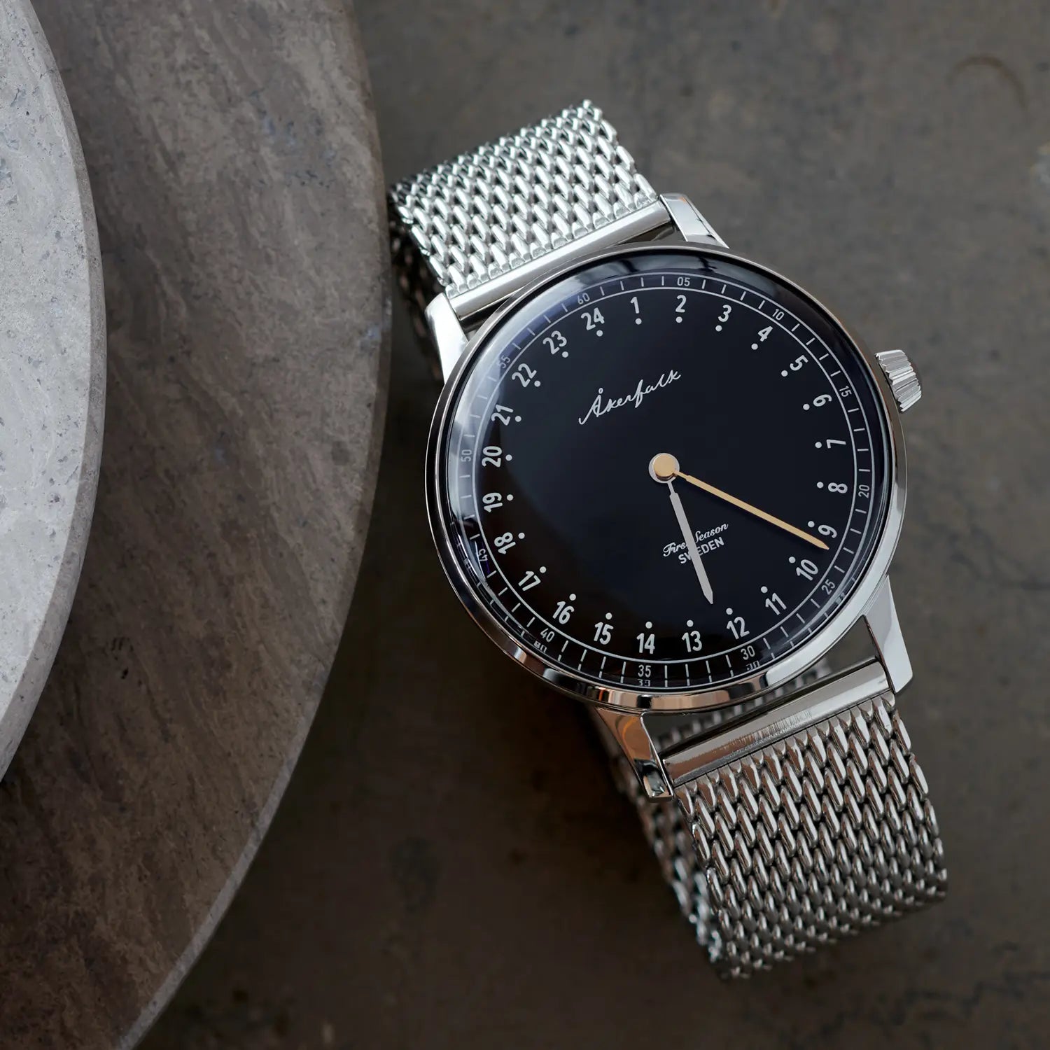 Drawing inspiration from classic Swedish design and iconic brands like Fjällräven, Svenskt Tenn, and Volvo Automobiles, we strive to infuse the overwhelming majesty of Sweden's natural beauty into every creation we craft. Experience the essence of Akerfalk Watches and indulge in the extraordinary beauty that resonates with the soul.